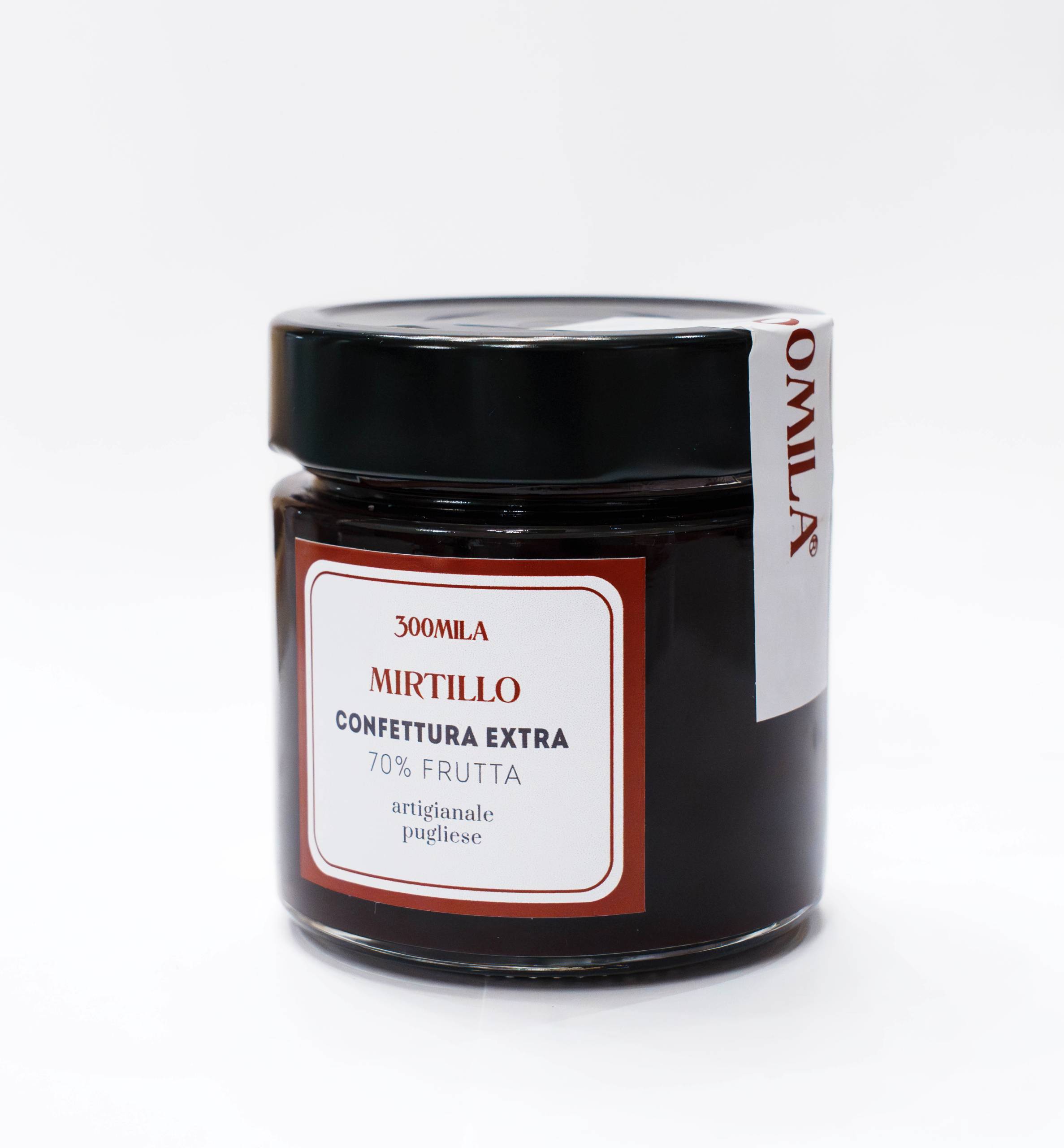 INGREDIENTI: 70% Mirtilli, Zucchero semolato, Limoni, Pectina [Pectina ad alto metossile (E440i), Destrosio].
